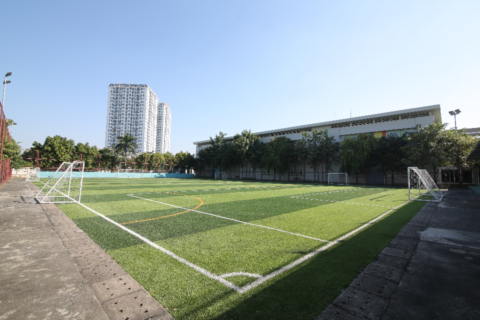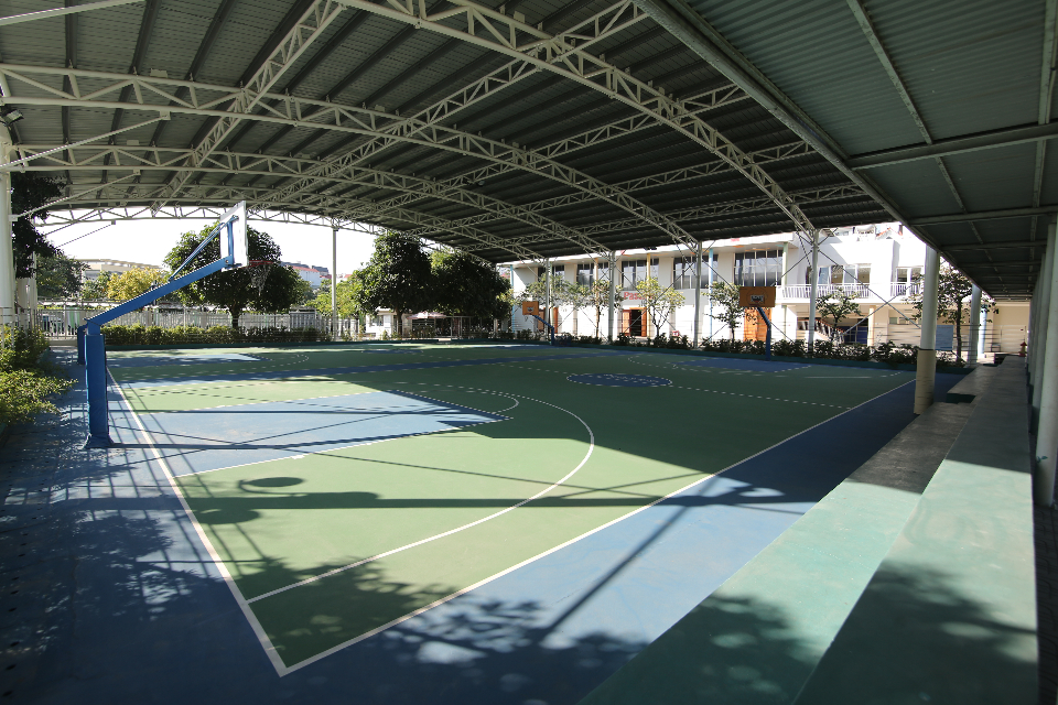 * Khu thể thao 02 sân bóng đá có kích thước 40m x 60m, đạt chuẩn FIFA cho sân bóng đá 7 người – mặt sân được phủ lớp cỏ nhân tạo theo tiêu chuẩn Quốc tế. 02 bể bơi bốn mùa trong nhà có kích thước 12,5m x 25m, học sinh có thể thỏa sức vận động, tập luyện các môn thể thao dưới nước kể cả trong thời tiết lạnh giá của mùa đông Hà Nội. 03 sân bóng rổ, 01 nhà thi đấu thể thao sàn gỗ, 01 phòng tập thể hình... để học sinh có đầy đủ mọi điều kiện để thực hiện các hoạt động rèn luyện thể thao.