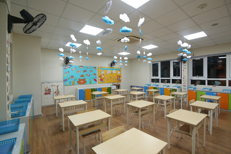 * Khu học tập Với gần 200 phòng học theo tiêu chuẩn dành cho 20 – 24 học sinh/ lớp được thiết kế theo tiêu chí lớp học linh hoạt, bàn ghế đơn dễ di chuyển và phù hợp với nhiều mô hình học tập khác nhau. Trang thiết bị hiện đại bao gồm bảng tích hợp, máy chiếu, máy tính kết nối mạng toàn trường cùng hệ thống chiếu sáng phù hợp, điều hòa nhiệt độ hai chiều,…. Điều này sẽ mang lại không khí học tập tích cực, tạo niềm say mê, hứng thú cho học sinh.