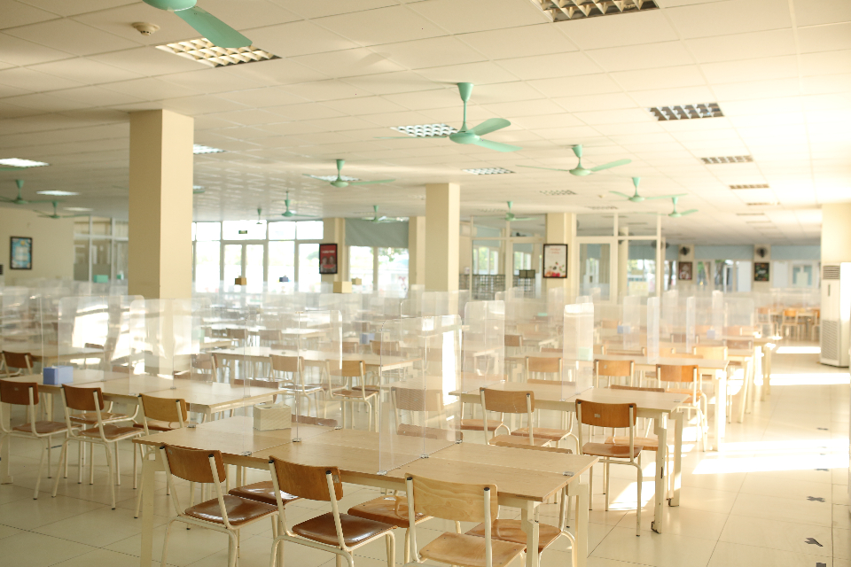Đặc biệt, sau mỗi bữa ăn hàng ngày, bộ phận Canteen tiến hành vệ sinh khử khuẩn toàn bộ khu vực nhà ăn (mặt bàn ăn, mặt ghế, sàn nhà), lau chùi sạch sẽ toàn bộ khu nấu, khu sơ chế… để đảm bảo vệ sinh.