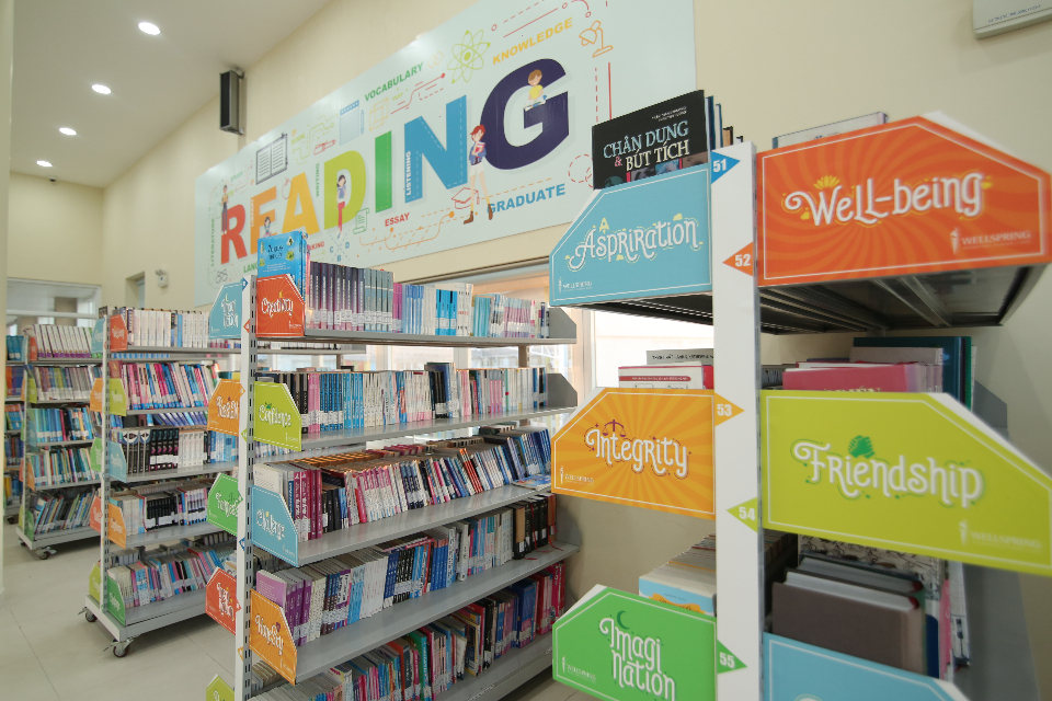 * Thư viện cho 3 cấp học: Tiểu học, THCS, THPT với hàng nghìn đầu sách bằng cả tiếng Việt và tiếng Anh được thiết kế theo môn học, theo chủ đề và theo lứa tuổi, trình độ. Học sinh có thể tìm đọc tất cả các loại sách, phục vụ cho nhu cầu học tập và tìm hiểu thế giới rộng lớn. Thư viện điện tử nối mạng LAN với các cây thư mục có định hướng kết cấu theo các môn học, theo chủ đề từ dễ đến khó. Với không gian rộng và yên tĩnh, thư viện sẽ là nơi các em học sinh có thể dành tâm trí đi sâu vào những bài đọc trong một bầu không khí thật dễ chịu cùng các hoạt động học nhóm.